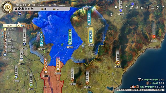 本拠含め全ての城があまり豊かではなく、立地・兵数・武将の質と厳しい戦いになる。