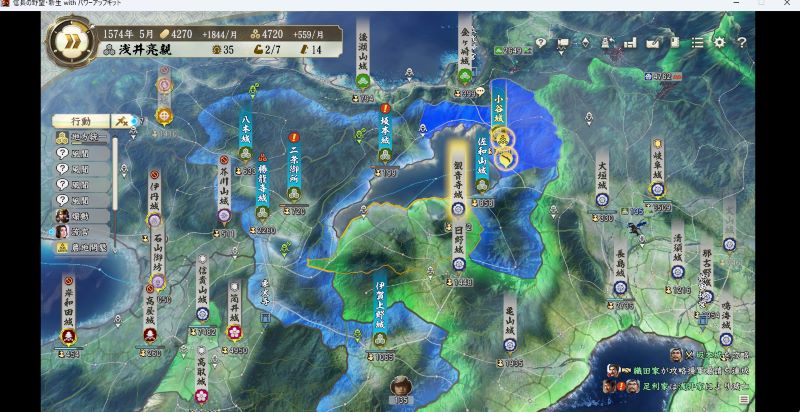 織田との手切れの前に勢力を拡大するのはほぼ不可能、六角を従属させおとなしくイベントまで灌漑水路でも立てながら時間を潰そう