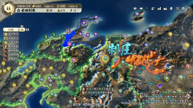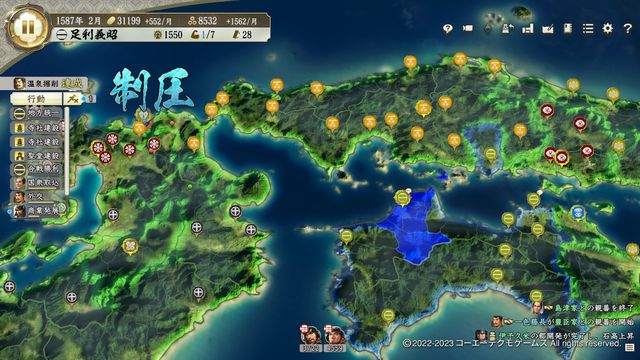 しばらく内政を行ったのち豊臣戦となるが、東側の状況を見ながら時期を判断しよう、上杉が従属吸収されていなければゆっくり内政を行っていても問題はないが