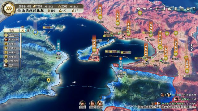 ただし今度は羽柴の西進・宇喜多の四国進出を防がないと拡大先がなくなるため天霧城・白地城・安芸城に攻城予約が必要になる。