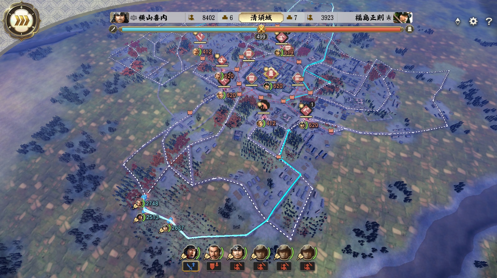 落とした後は、九鬼家を落とせそうな兵数まで回復待ち。