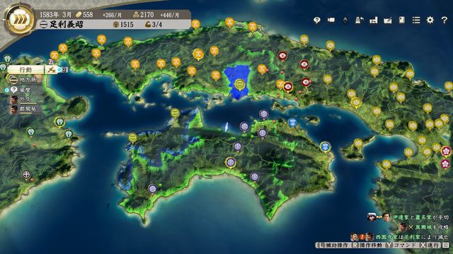 なお、本拠が最果ての地で順次移転していかないと合戦できないため金銭のやりくりも厳しい。
