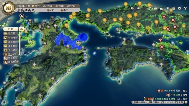 途中、中村城を落とすと島津の攻撃対象になるのでその前に役職を贈って島津と同盟しておくこと。