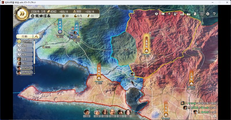 他には大内家が滅亡寸前だったり、武田家が拡大していたり、尾張統一から勢力図が変化している。