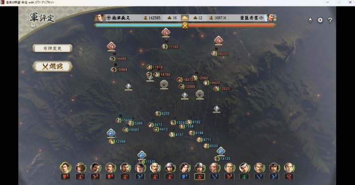 初手は憎き真田家…と行きたいところだが、上田城を攻略すると豊臣と隣接扱いとなってしまい出陣先のない豊臣が全力で攻撃してくる