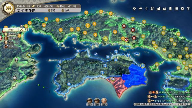 一方で四国に手を出すと、より早期に豊臣と隣接してしまうことになる。