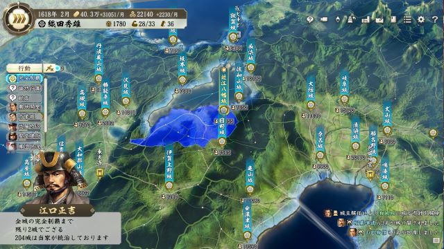 8城あるが侍大将以上が7人いるため城主は足りる(しかも全員有能)。