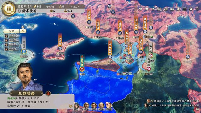 6月になると本能寺の変が発生し三好咲岩が羽柴に移籍するため高屋城からいなくなるので注意。