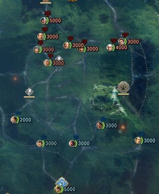 史実展開の場合は最初から南東端に大谷吉継1500が布陣しているが待機のまま行動不可。