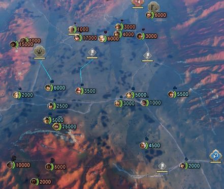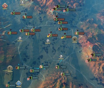 天王山は最寄り2部隊の直行で奪取でき、奪取後は1部隊を天王山の一つ先のポイントまで進めて挟撃されずに時間を稼ぐ。