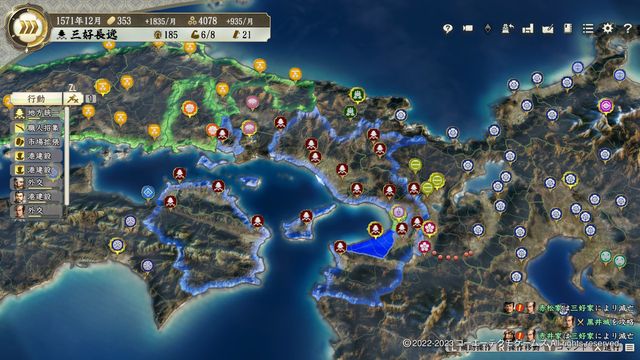 兵力は多いが相手の三好の援軍、織田への援軍要請を活用して合戦を行えば問題なく落とせる、余裕があれば威風小を起こせると攻略後掌握が解除されていないのでそのまま使用できる