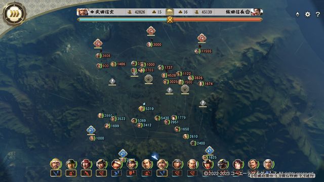 織田戦の初戦は部隊数・兵数が互角で武将の質は上回るが織田全軍が鉄砲レベル5以上とやり応えのある合戦になる。