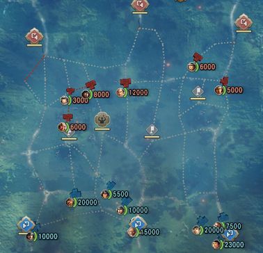 兵数こそ65000vs74000と劣るが行動不可の部隊を考慮すると実質的には58500vs31000と圧倒している。