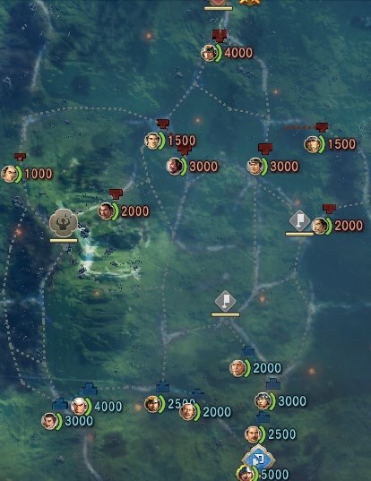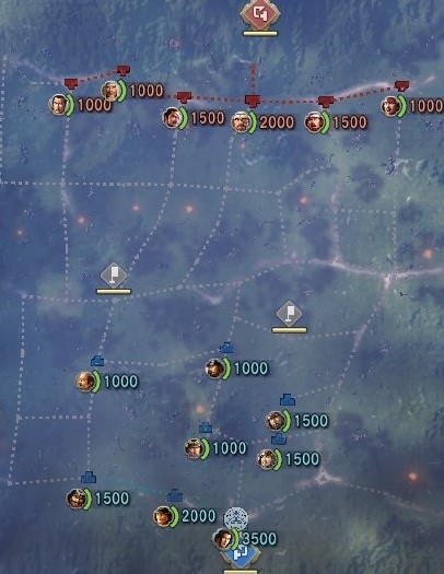 天王山は最寄り2部隊の直行で奪取でき、奪取後は1部隊を天王山の一つ先のポイントまで進めて挟撃されずに時間を稼ぐ。