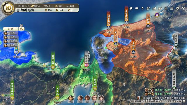 開始二年もすると、初期状態の同盟が期限切れとなるため、四国・九州の諸大名を同様に従属可能となる。