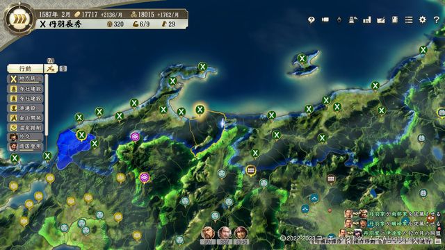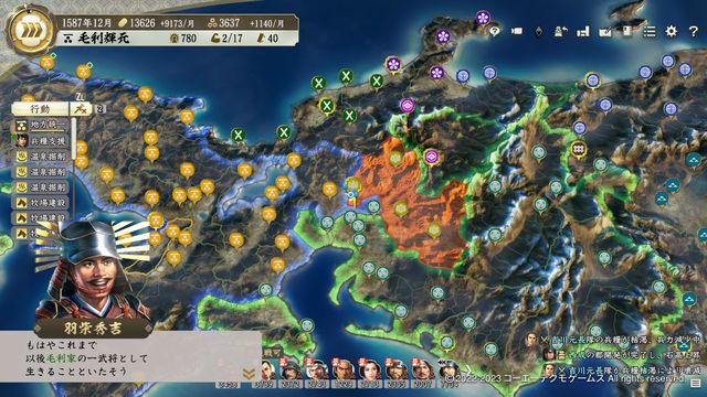 ただし今度は羽柴の西進・宇喜多の四国進出を防がないと拡大先がなくなるため天霧城・白地城・安芸城に攻城予約が必要になる。