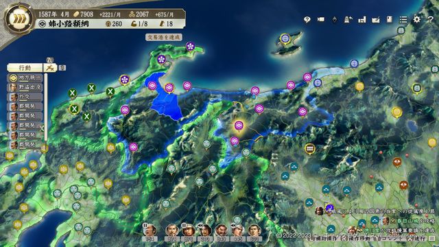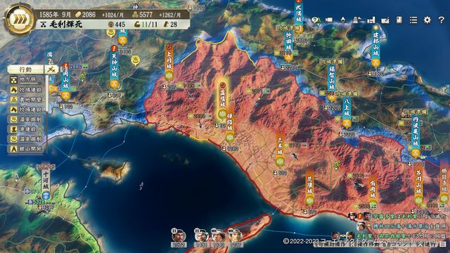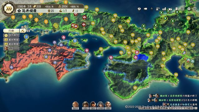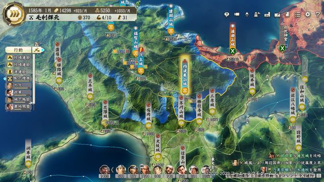 このあたりで豊臣とは同盟を結べるようになるので同盟を結んでおき、毛利家との同盟が切れた段階で拡大されないように攻城予約をかけつつ毛利家を滅亡させよう
