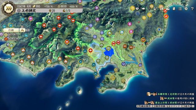 おまけに固有政策で制圧した郡の農村と市を掌握でき、氏康は制圧した郡の掌握状態を解除しない固有特性があり良い事尽くし。