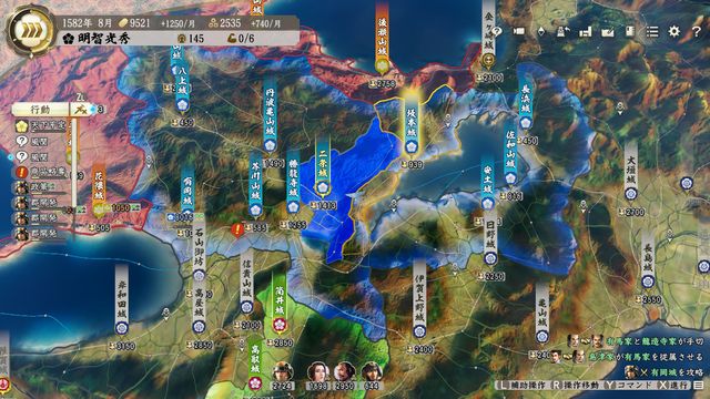まず最初に明智家選択後、どこにも出兵しなくても半月も経たないうちに織田軍と羽柴軍が攻めてくるパターンがあるのでその回避が必須