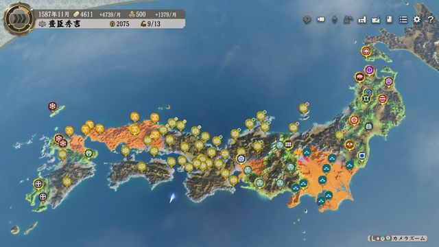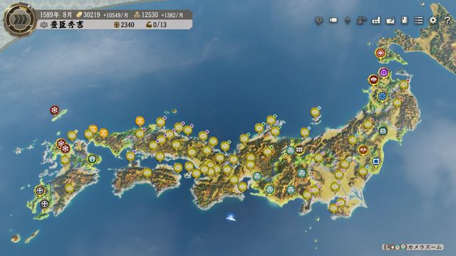 城は全部寝返り入手で陥落させた城がゼロのため、未だクリア目標が提示されていない。