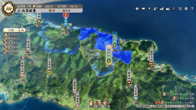 おまけに本拠の山口館は大農村が2つあるため、石高はかなり伸びる。1人でどんどん制圧出来るだろう。