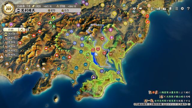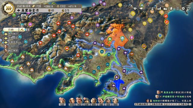 おまけに固有政策で制圧した郡の農村と市を掌握でき、氏康は制圧した郡の掌握状態を解除しない固有特性があり良い事尽くし。