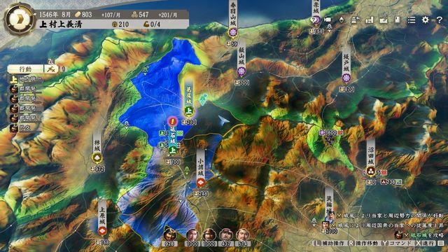 領内の国衆の従属度は低く出陣まで代官懐柔が合計9回ほど必要。