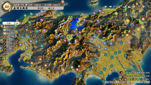 北は長尾・南は武田と隣接しており、開始時5城の武田には臣従できない。