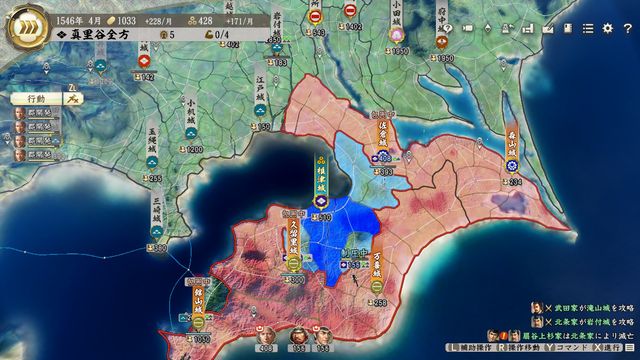 ただし北条・今川・武田の同盟はあるので、玉縄あたりまで侵攻すると義元や晴信が防衛にやってくるので結構大変。