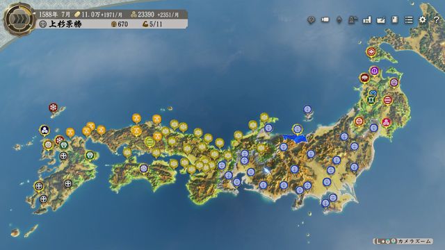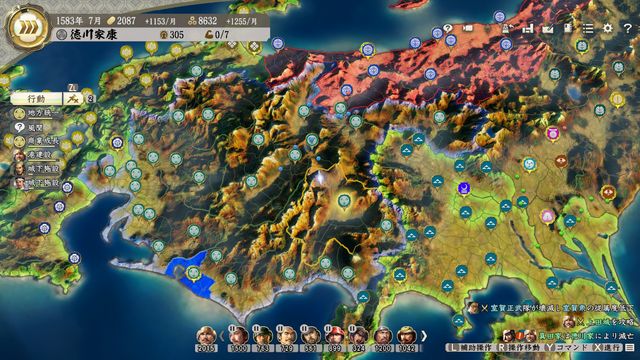 次は92年に豊臣・徳川の同盟切れを待って徳川戦となるので、それまで5年ほど内政期間。