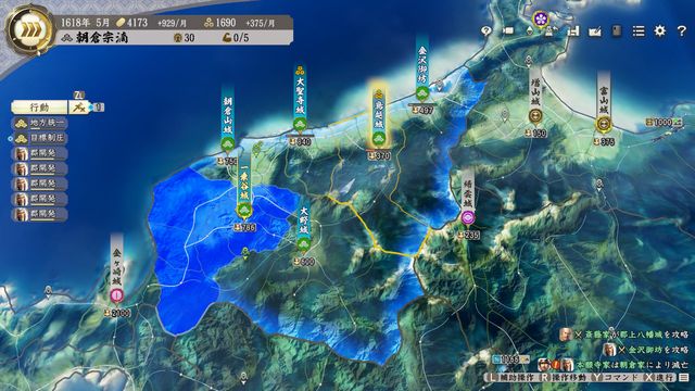 岡崎城・引馬城・駿府城は勿論だが掛川城も石高が結構伸びるので、その後の攻略の主要拠点として育てていこう。