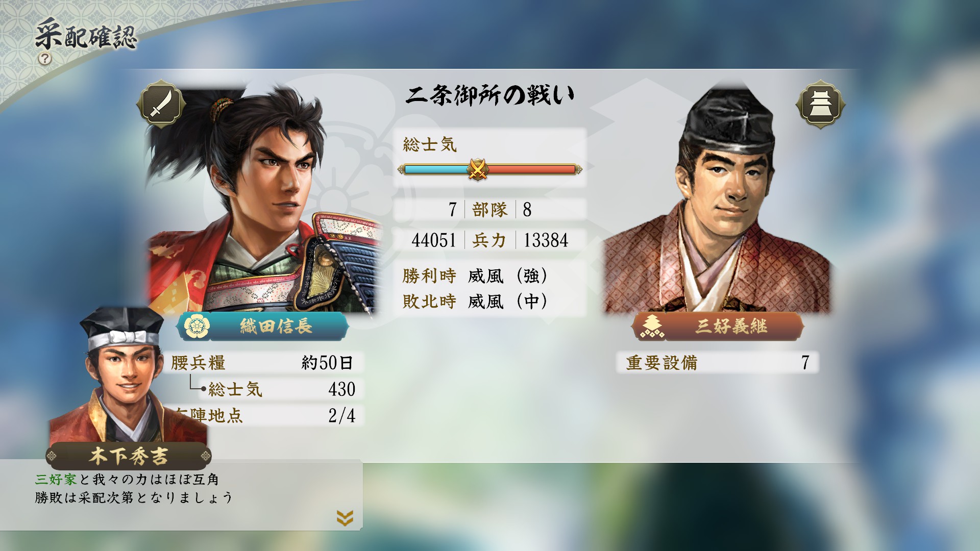 初期時点では部将なので、この人の昇進も一つの課題になる。