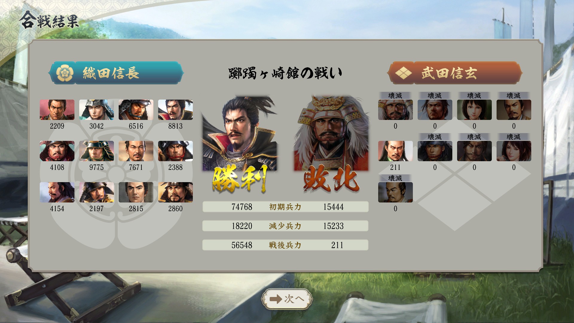 楽市奨励と鉄砲隊強化は軍団としてはわりとハンデな設定だったがさすがに政策の強さは出てたんじゃないかと思われる。