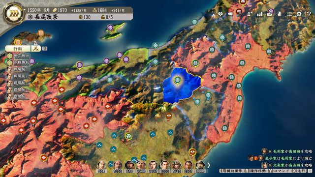 ちなみに近畿で三好、九州で大友が暴れまくります。