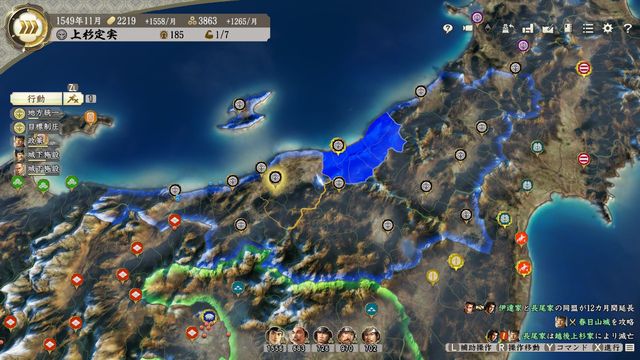 ただし、三好・斎藤と親善することになるので先に市を掌握するなどしても資金繰りはギリギリ。