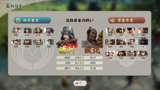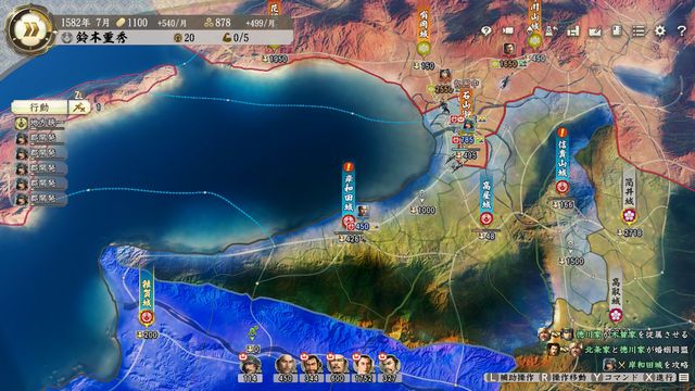 合戦後に一気に4城を攻略することになるため、損害も極力抑える必要がある。