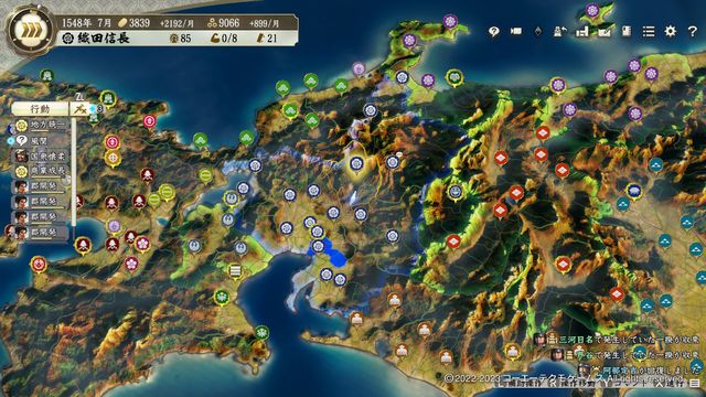 未だ5城と城数は多くないが、四名臣に加えて初期の名将たちも揃っており人材の充実度は全国随一、威信も高い。