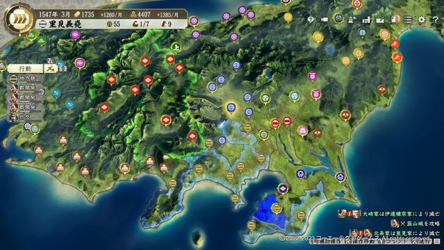 ただし、難易度上級以上では開始半年ほどで東から北条にも隣接されることにも注意する必要がある。