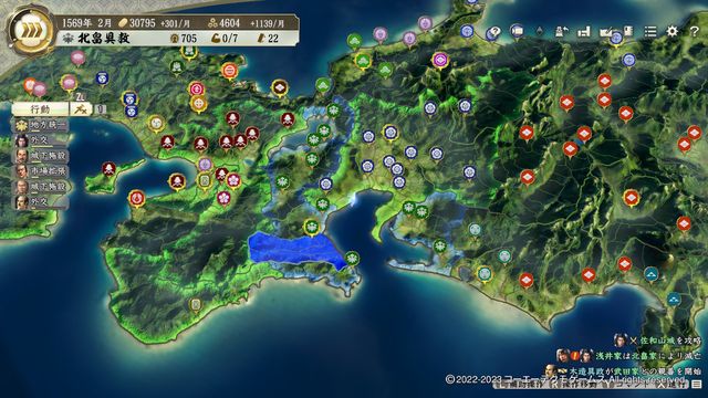 城数・兵力ともに全国トップであり、周囲に対抗できそうな勢力は存在せず、配下の身分も軒並み高いため政策実施に苦労することもない