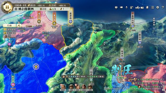 パッと見では姉小路家がカモに見えるが、開幕で徳川家が姉小路を従属させてしまううえ、1ヶ月後の小牧長久手イベントで秀吉と徳川が和睦してしまうため手が出せない。