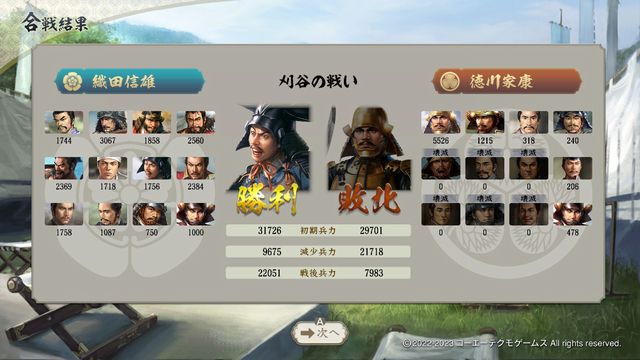 もし無理だとしても同じような状況になる大坂の陣シナリオと違い、武将数も十分なので、防衛拠点を駆使しながら少しずつでも進んでいけばクリアすることは不可能ではない