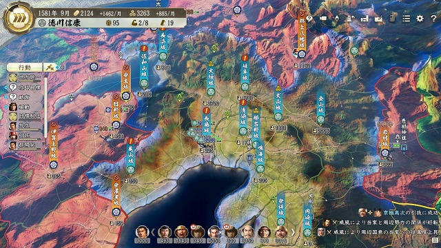 初期保有城よりも大兵力を出せるのでここに忠勝・家康・直政など強武将を入れるとのちの攻略もはかどる。