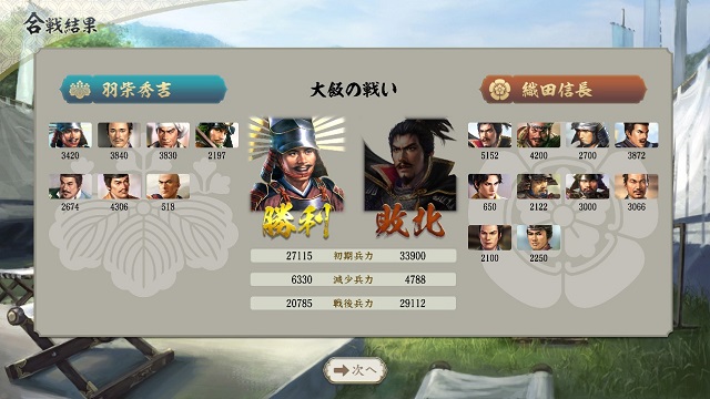 ここまで削ってしまえばこちらの優位は確定し、徳川や武田も織田攻めに動き出すので反撃の恐れもない。