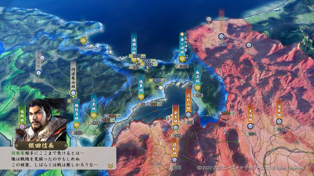 当然のように武将数が足りないので九州・四国を制圧しても良いし、羽柴を同盟が切れ次第滅ぼしてもよい、その場合は領土が分断される判定になるので織田の攻勢に注意しよう