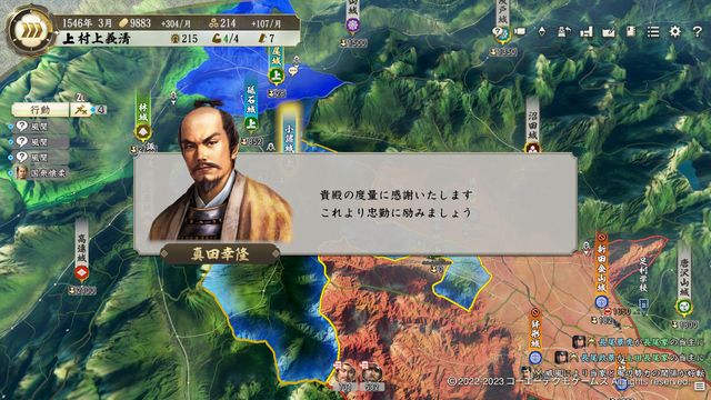 豊富な国衆に名所がシナジーを呼び、戦争自体には苦労らしい苦労はない。部将数と内政、そして時間が悩み所だろう。