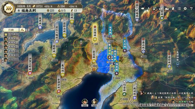 豊臣戦は東から徳川も攻めるので難易度は低いが、最終決戦を考えるとできるだけ徳川が取る城を減らしたい。