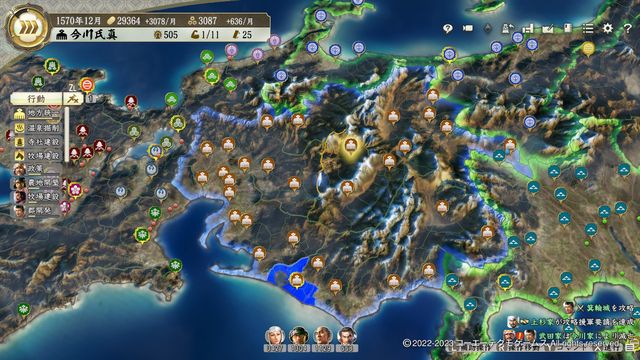 城数・兵力ともに全国トップであり、周囲に対抗できそうな勢力は存在せず、配下の身分も軒並み高いため政策実施に苦労することもない