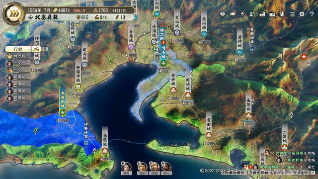 連戦で兵や兵糧が不足しがちなので、制度改新による領主の移動と分割出陣を活かした少数兵の包囲をメインにする。