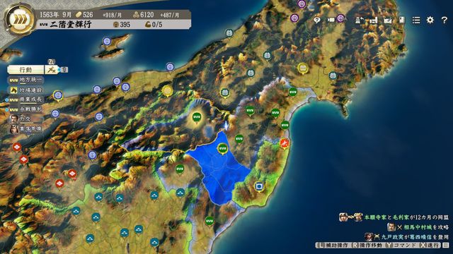 四国を制圧し大友・毛利と同盟できたら海を越えて拡大していこう。