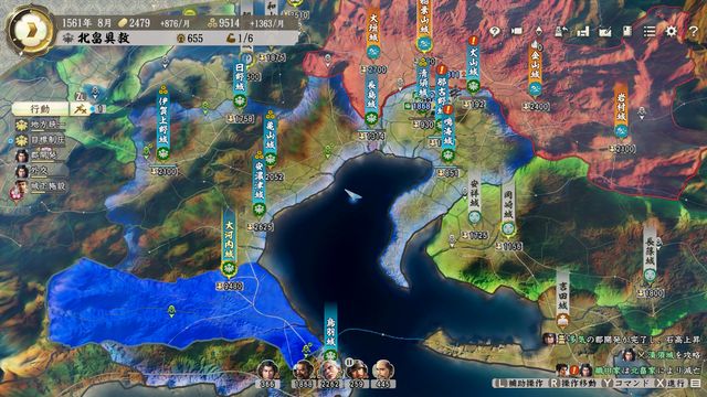 小部隊を断続的に出して郡を削っていくとともに出陣させて兵力回復の妨害を続けていこう。